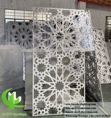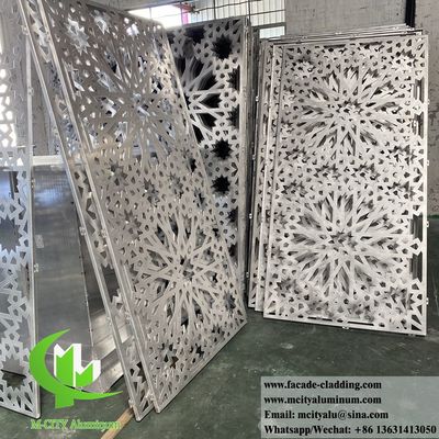 Bardage mural en aluminium de qualité supérieure présentant des motifs ajourés complexes d'inspiration islamique avec un revêtement en poudre durable pour une résistance exceptionnelle aux intempéries et un attrait esthétique.