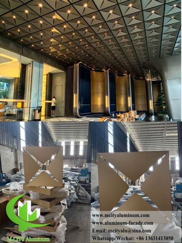 Les panneaux creux en aluminium seront utilisés pour les façades, les clôtures, les auvents, les plafonds, les écrans, les fenêtres, etc. Vous pouvez choisir les motifs dans notre catalogue ou nous envoyer le dessin ou l'image, nous pouvons le dessiner pour vous.