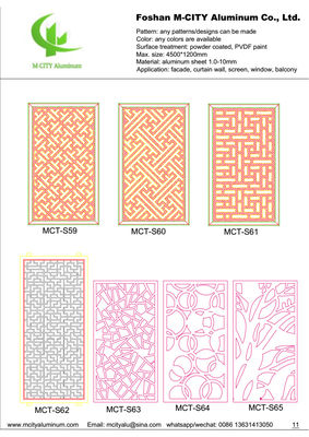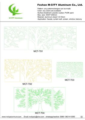 Pour répondre aux exigences individuelles des clients, sélectionnez des motifs dans nos rendus ou fournissez vos designs préférés pour personnalisation. Notre taille standard de panneau creux en aluminium est de 1200x2400 mm, avec des tailles personnalisées disponibles par ajustement des éléments de conception plutôt que par simple mise à l'échelle.