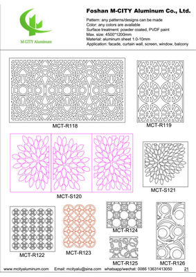 Afin de répondre aux exigences individuelles de chaque client, vous pouvez sélectionner le motif dans les rendus directement, vous pouvez également choisir les motifs de votre personnalisation de motif préféré,Notre objectif est de personnaliser les meilleurs produits pour chaque client.Le panneau creux en aluminium peut être ajusté en taille, pas un simple zoom, mais en fonction des éléments de conception de réglage de taille du client.si une taille supérieure à cette taille doit être combinée.